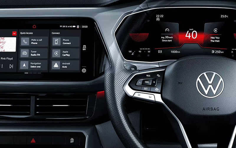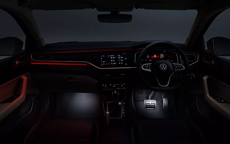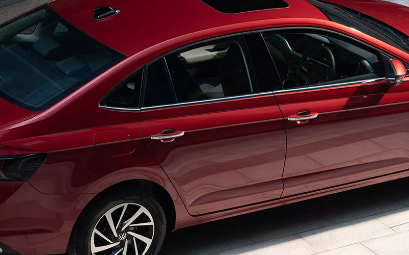 Its impressive grille with integrated LED headlamps with DRLs and chrome front wing with glossy black accents give the Virtus an unforgettable look.